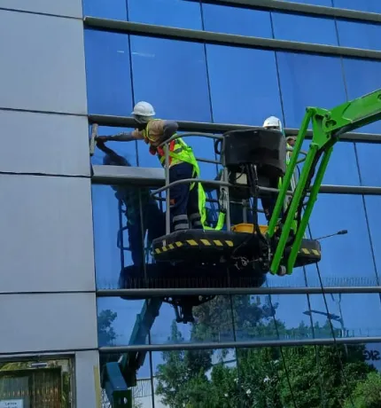 Our technicians are trained to identify material sensitivities before cleaning. For marble, we use pH-balanced products and precision polishing equipment. For glass façades, we use rope-access or water-fed systems operated by certified professionals.